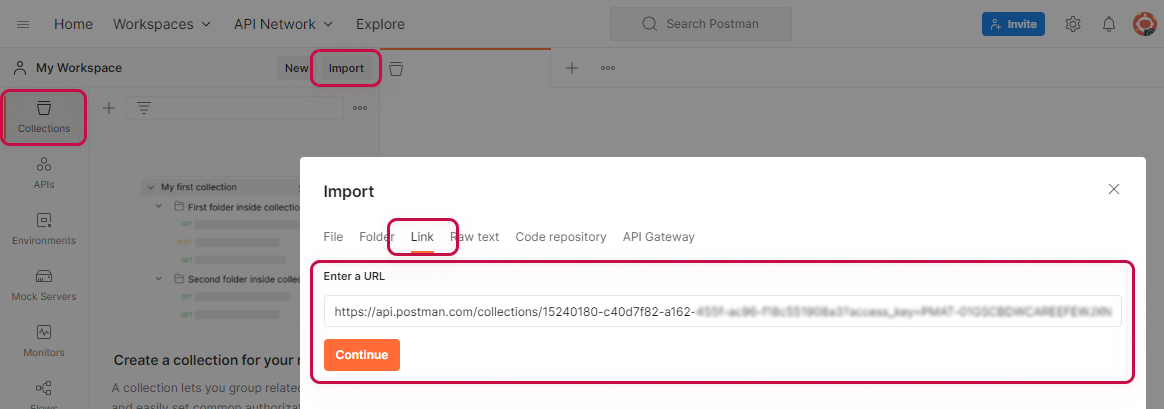 Importing into Postman via URL