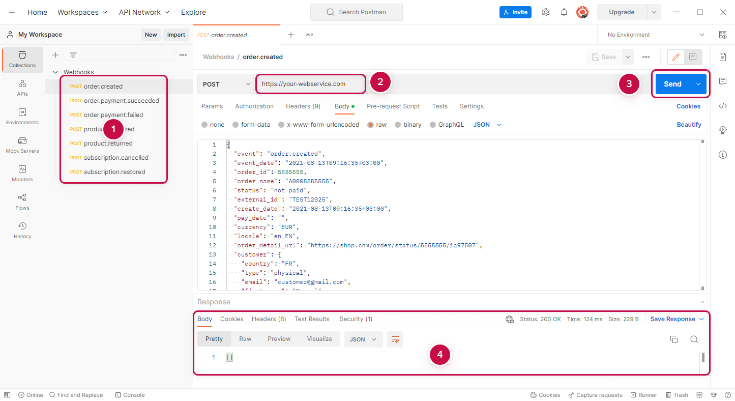 Emulate Sending Webhooks (examples of webhooks in Postman)