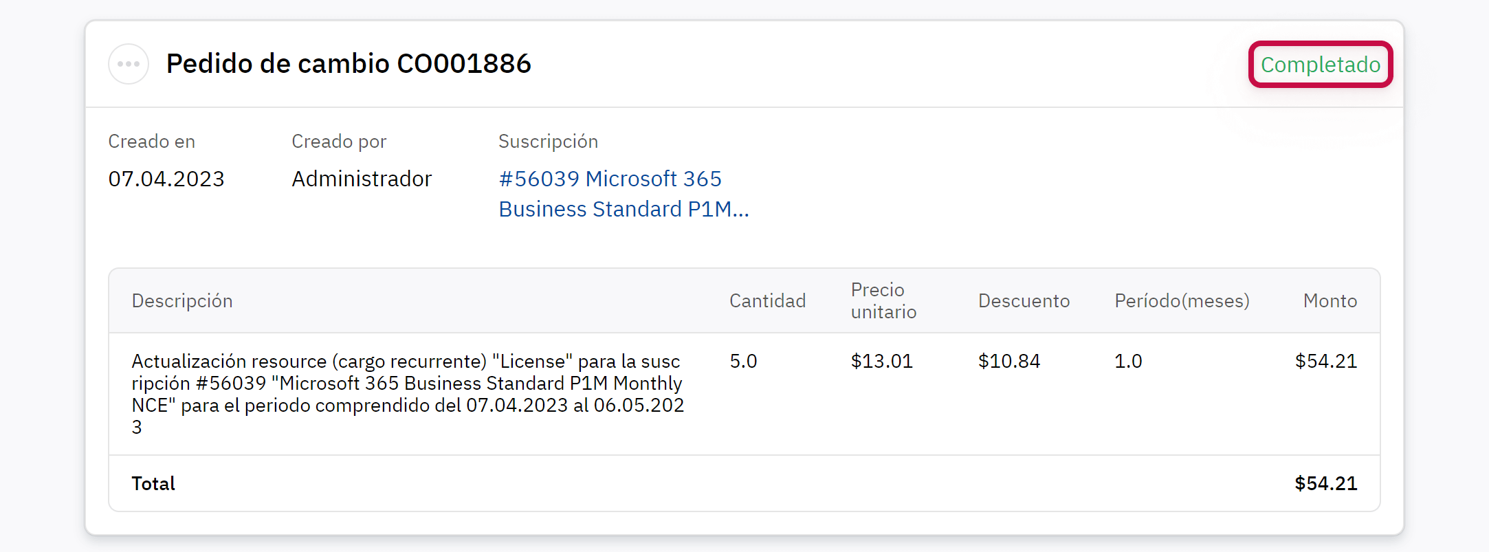 • El aumento en la cantidad de recursos en el período de validez actual está disponible para cualquier tipo de suscripción.