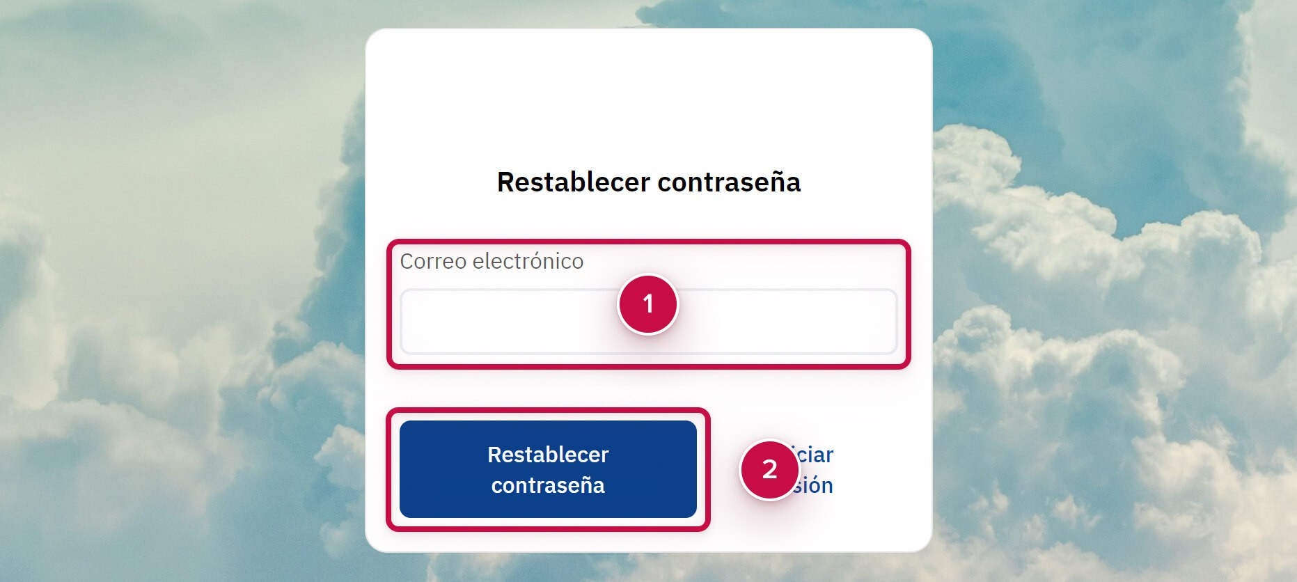 Cumplimentación del formulario de recuperación de contraseña