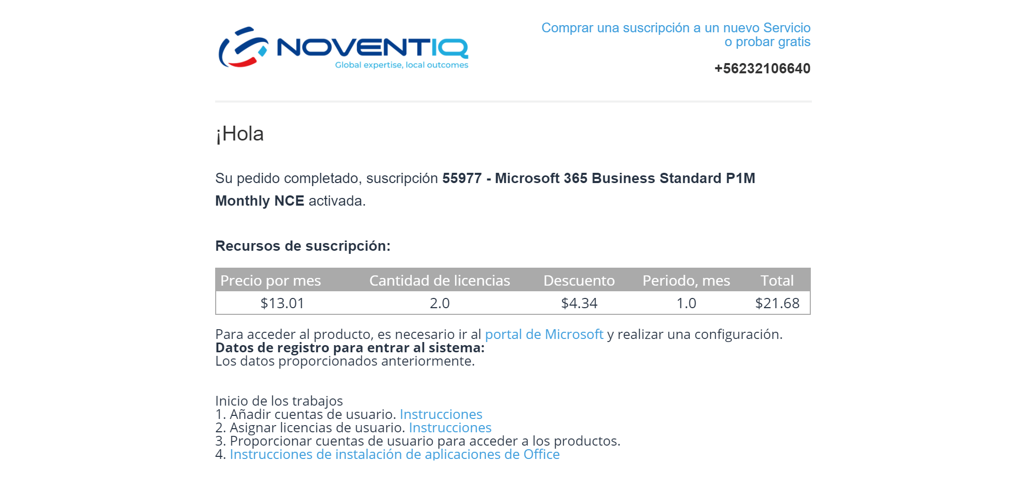 Aparecerá una nueva suscripción en su cuenta personal en el portal del proveedor.