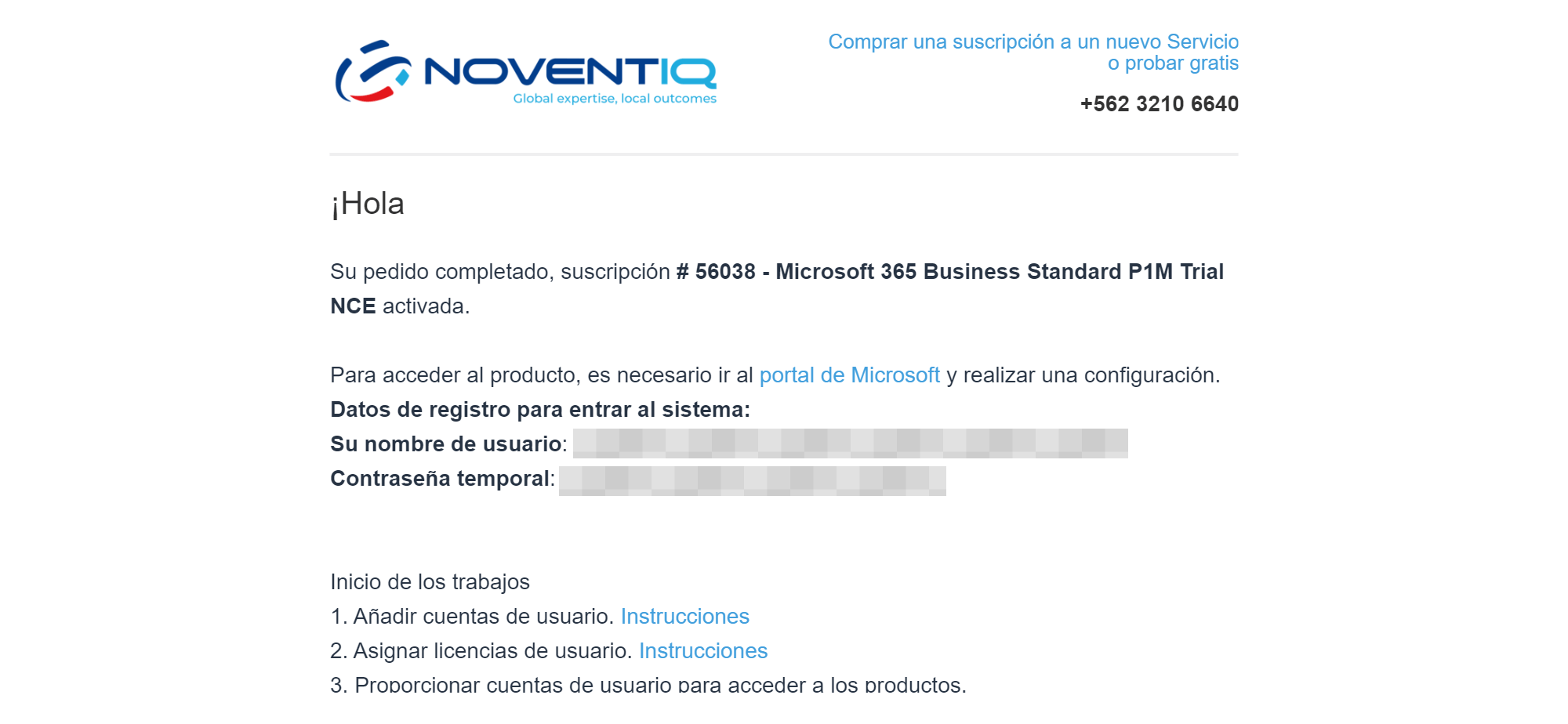 La activación de la suscripción se produce automáticamente durante un tiempo después de realizar un pedido.