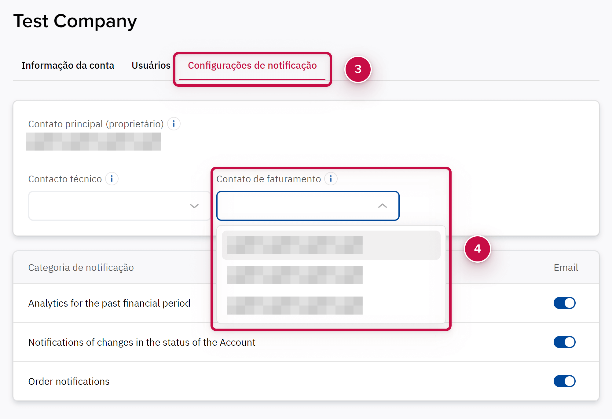 Contato financeiro permite atribuir um usuário que receberá notificações sobre pagamentos e documentos contábeis.