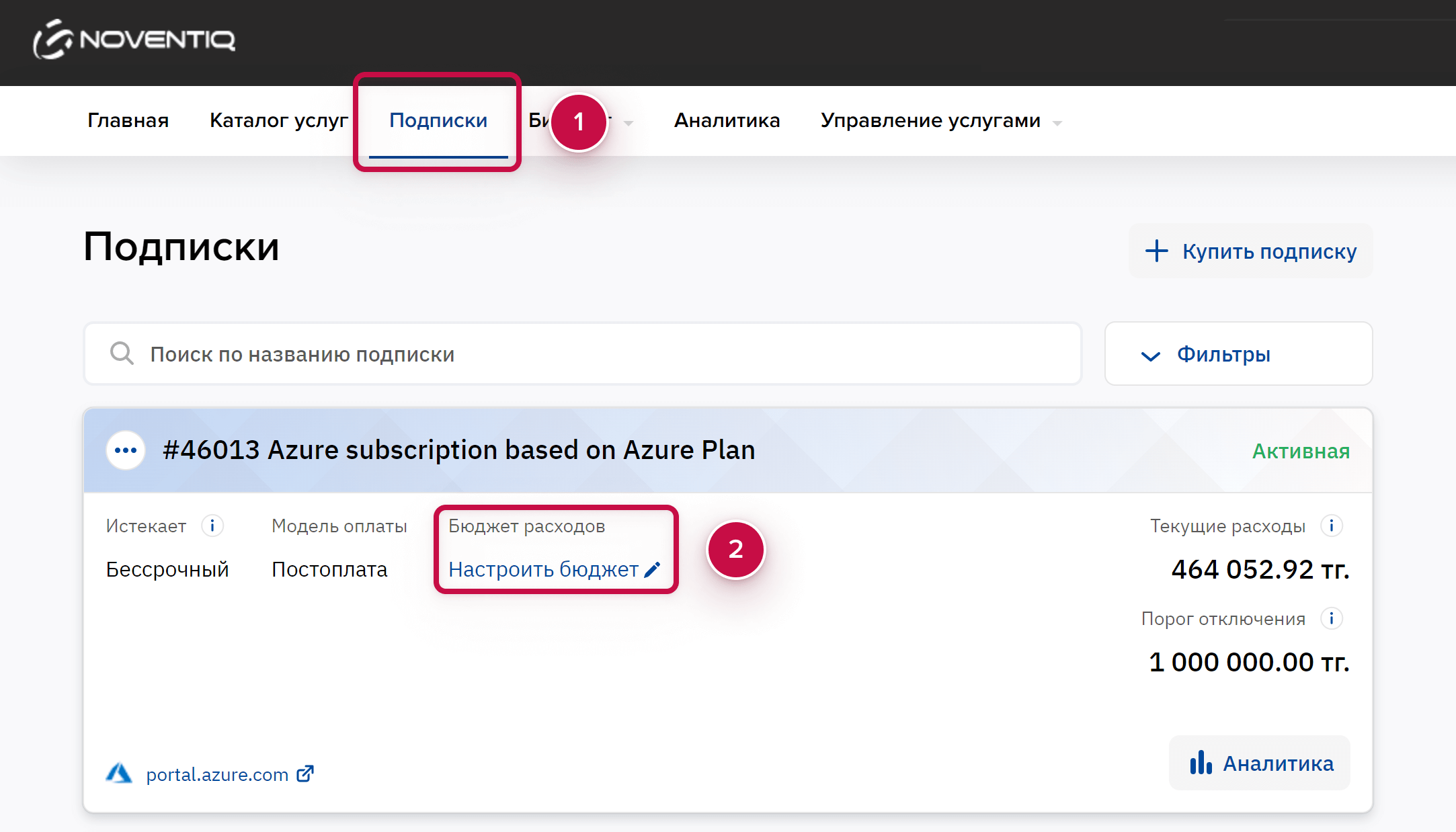 Текст ссылки может быть следующим:Настроить бюджет — если для выбранной подписки бюджет еще не задан.