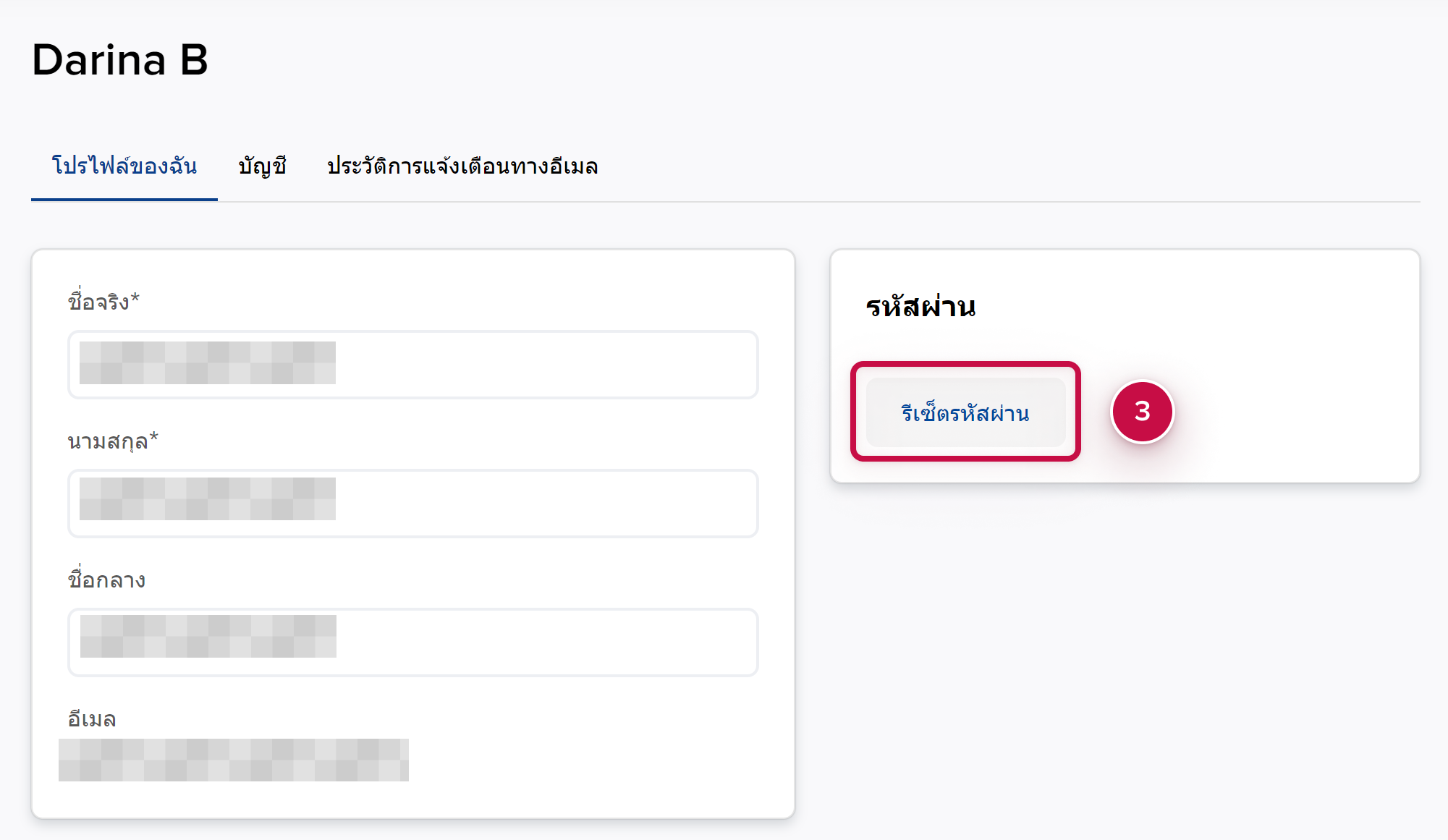 คลิกปุ่มรีเซ็ตรหัสผ่าน ➂.