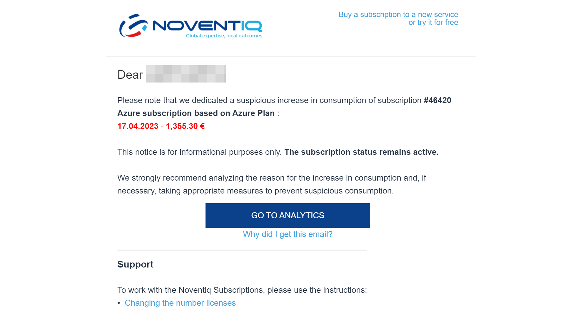 Noventiq Market ประกอบด้วยบริการตรวจจับความผิดปกติของการใช้บริการด้วยรูปแบบการชำระเงิน pay-as-you-go. บริการนี้เกี่ยวข้องกับบริการประเภท Infrastructure as a Service เช่น Microsoft Azure, Google Cloud Platform, AWS บริการนี้มีให้โดยค่าเริ่มต้นสำหรับลูกค้าทุกรายที่สมัครใช้บริการเหล่านี้