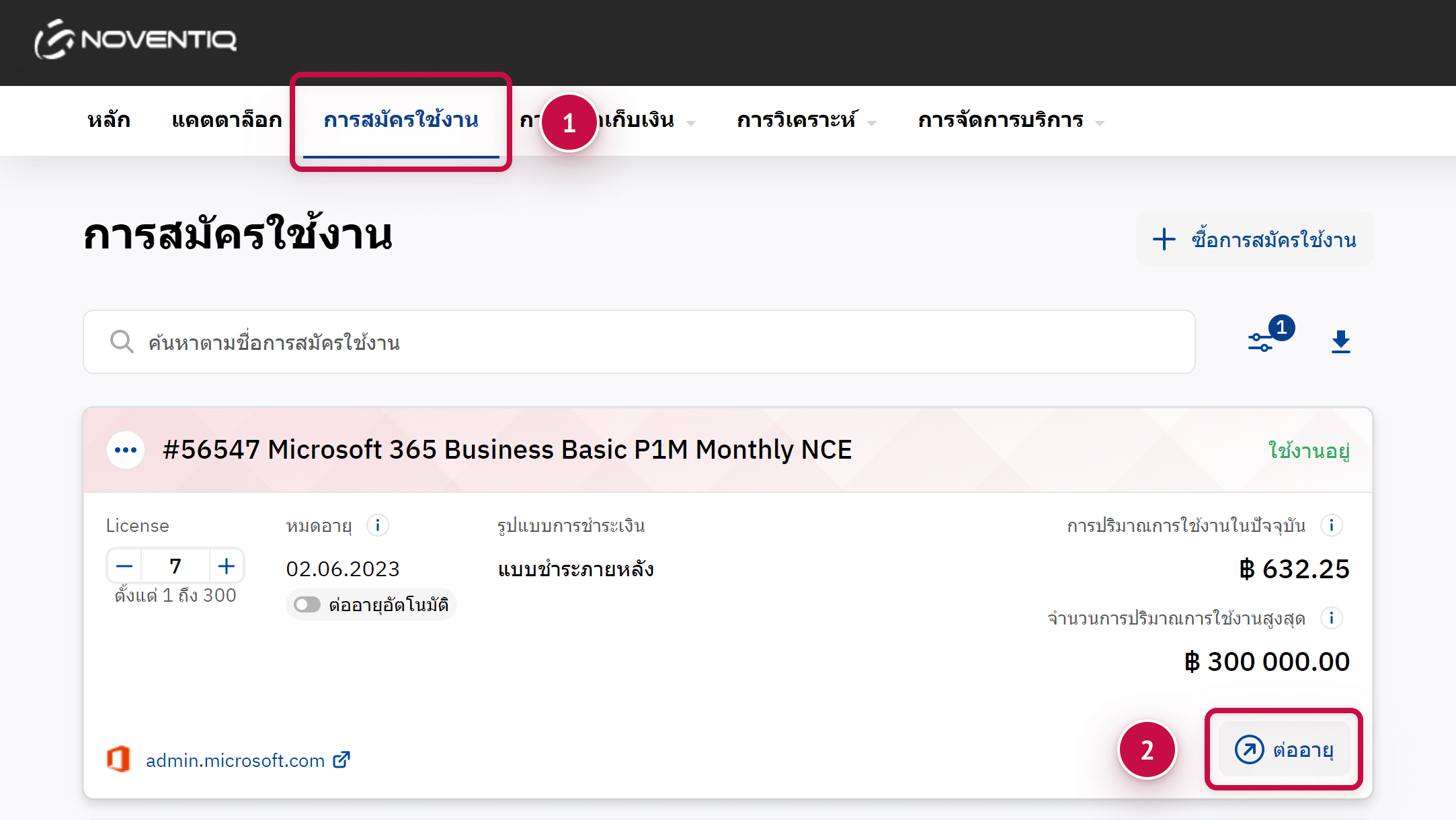 ระบุจำนวนสิทธิ์ใช้งานใหม่ แพลตฟอร์มจะคำนวณค่าการสมัครใช้งานใหม่โดยอัตโนมัติ
